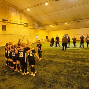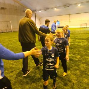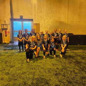 Alla flickor belönades med en medalj från sommarens Juniorcup. Medaljerna delades ut efter årets viktigaste matcher, föräldramatcherna. Regnet ställde till det än en gång och vi ordnade den i Adidashallen med medaljfika efteråt.